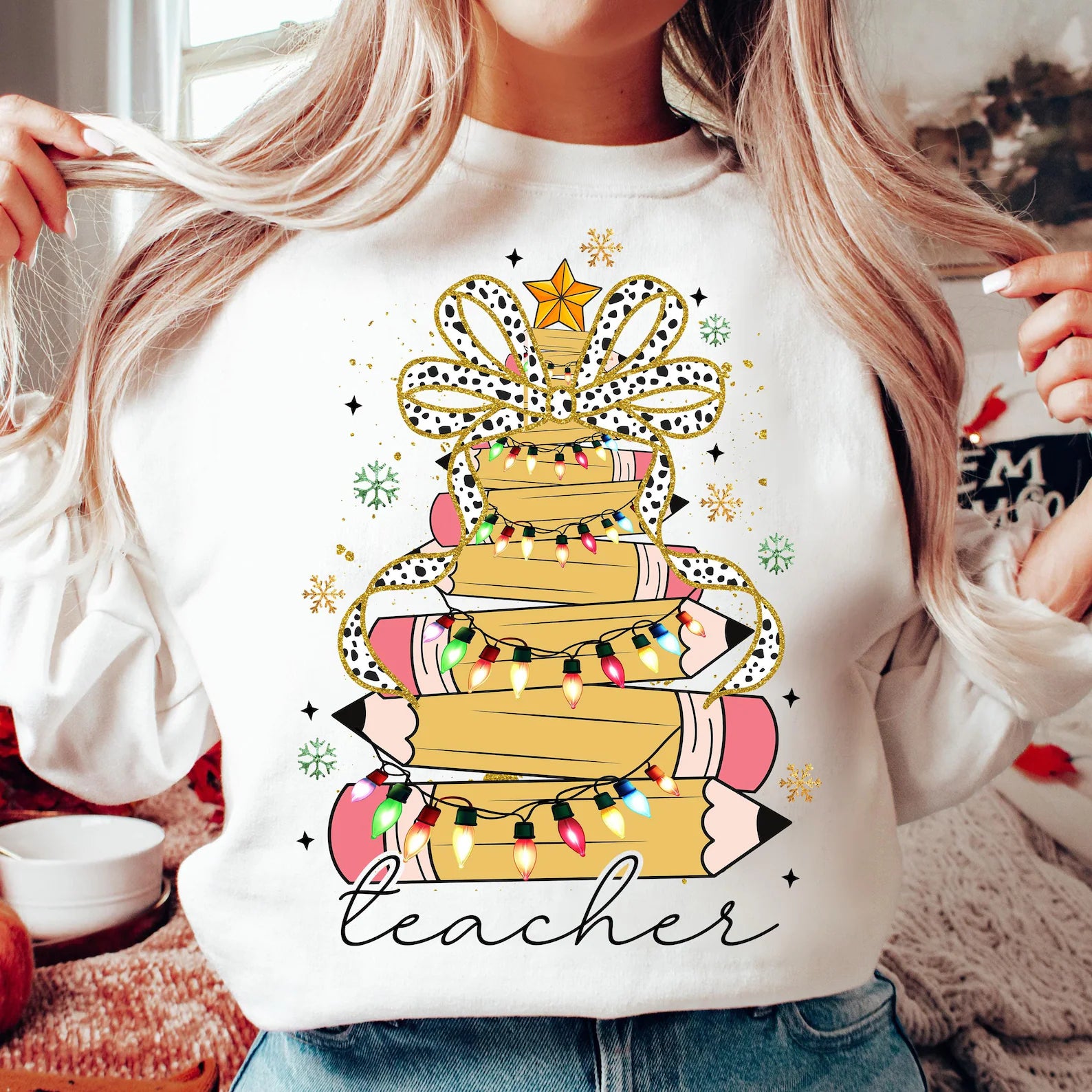 Pencil tree- crewneck - sand color- NOT WHITE (unless you request that)
